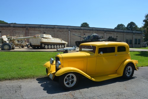 1,) On Labor Day, Motor Man and I drove our little yellow ’32 (Vicky) to a nearby 50’s-type drive-in for lunch.  On the way, we passed the War Memorial Museum in Newport News and took a little drive around the premises. Motor Man commented that our car is older than those tanks. It’s certainly brighter…
