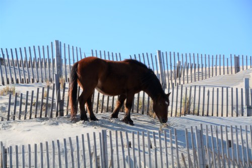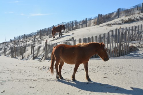 Horses, dunes and sand fences make for an interesting photo.