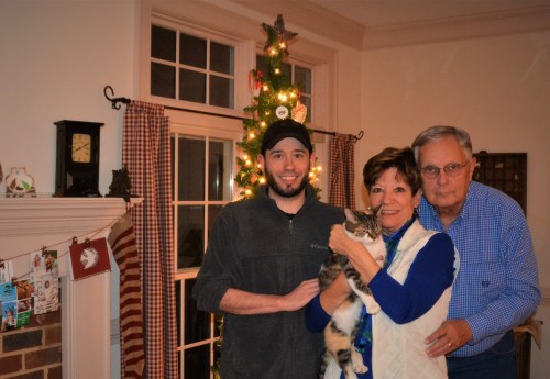2.) We had a quiet, nice Christmas. Motor Man, Marshall, Sundae and I took our traditional family Christmas photo that evening.