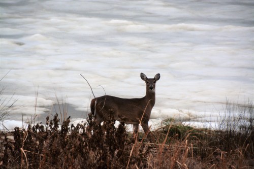 You may recall that our area was in the path of the “Bomb Cyclone” winter storm last week. Since then, we’ve had warm temperatures and most of the snow is gone.   There was quite a bit of ice on the river, though, and some of that still remains.