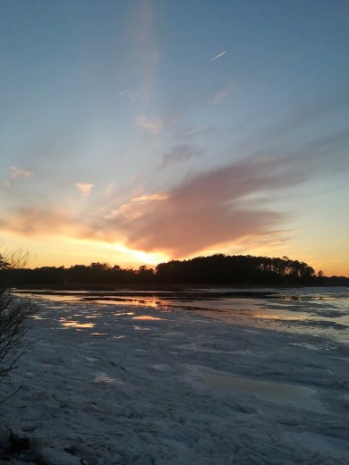 I took this short video yesterday morning just before sunrise. The roar you hear in the background is that of a work boat heading out to the James River.  There’s also some duck “chatter” with one rather boisterous one. I think he was demanding that I stop videoing and feed them breakfast corn.