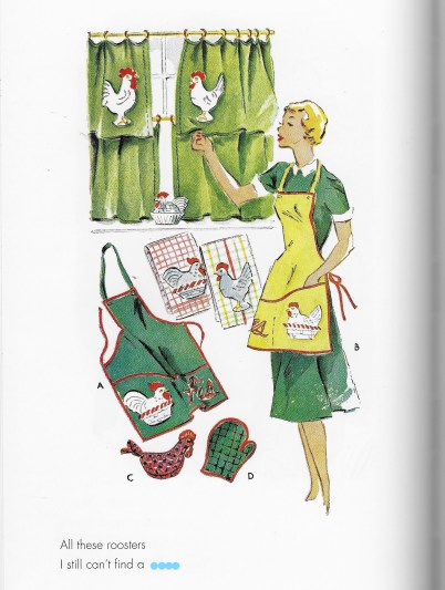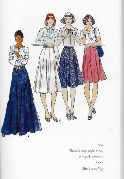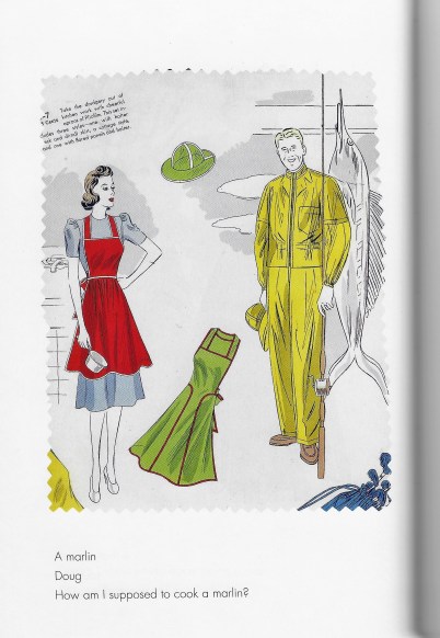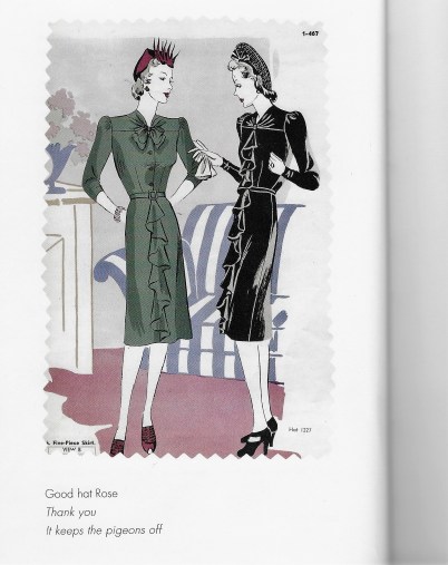 So, when I saw this book while shopping recently, I thought what a clever, CLEVER idea: give captions to those vintage sewing pattern images.