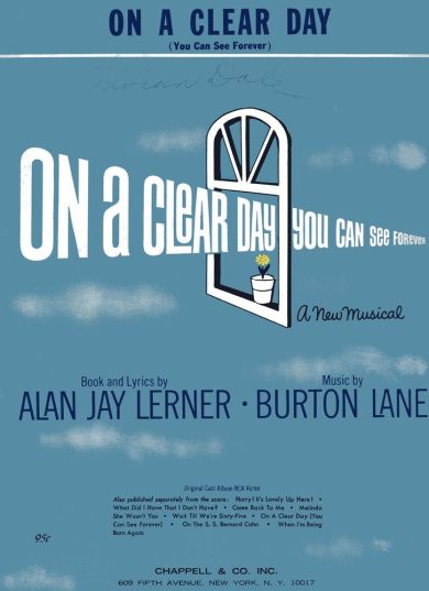 When I was almost a teenager, my late sister, Rose, took a trip to New York City. While there, she went to the Broadway play, “On A Clear Day You Can See Forever”. I wasn’t quite sure what year she made the trip, but thanks to Wikipedia, I discovered that the play only ran from October 17, 1965 til June 11, 1966. I’m fairly certain Rose went in April, so that narrows it right down.