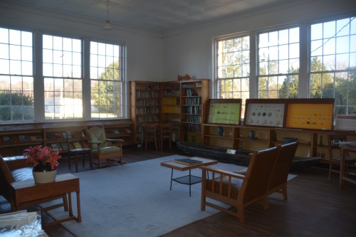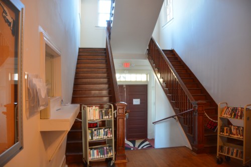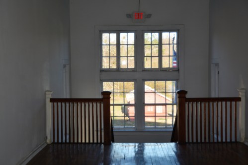 But perhaps this next picture was my favorite from that evening. This is the upstairs hallway, looking toward the front of the school. The little red building you can see through the windows is actually across the street. It was our “lunchroom”, which consisted of snacks, candy, soft drinks….and Stewart Sandwiches.