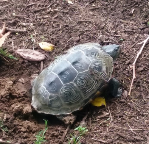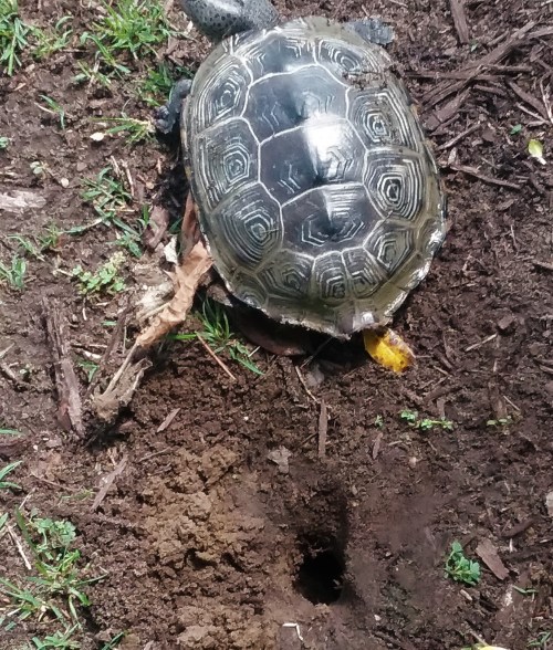 We have seen so many turtles in the past few days, including this biggie in one of our flowerbeds.