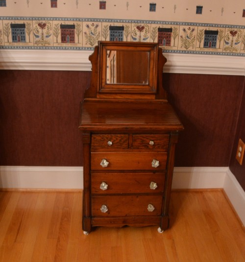 This tiny child’s dresser, made of pine, is only 39 inches tall.
