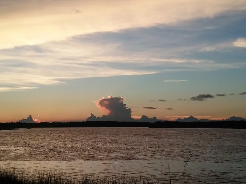 So, because of that relief, I thought we’d just have a fun blog post today. I shared this photo of Wednesday’s sunset on my Facebook page. It wasn’t until I uploaded it that I realized that it looks like an animal rising out of the water.