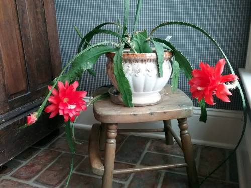 3.) My orchid cactus is brightening this little corner of its world our kitchen. It was a tiny cutting when I bought it from a nearby greenhouse/nursery a few years ago. It thrives on very little attention, which seems to be a good working arrangement for both of us.