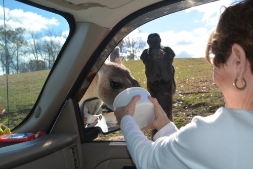 When we bought our tickets at the gate, we also purchased four small pails of food (pellets). The staff member gave us two empty buckets and advised us to pour a small amount in an empty pail to feed the various animals that would come up to our window.