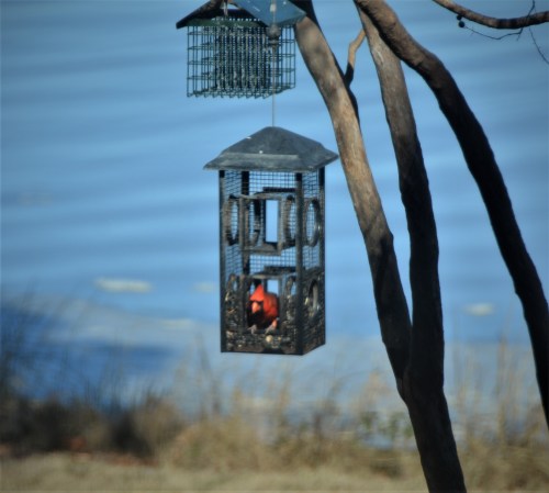 And the cheery red of a male cardinal always catches the eye. This one was nice enough to stay in that feeder long enough for me to get my camera.