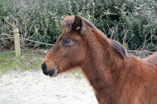 It’s always a treat to see one of the younger horses. This is Castano, born last summer, and he is sporting a mighty fine winter wool coat and black “boots”.