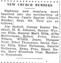 This next article also made me smile. The date on this one is September 12, 1935. Bennie was also my mom’s brother, Sarah was her youngest sister, and Allie was my dad’s brother. The church they became members of is in my hometown and the one I attended for many years.