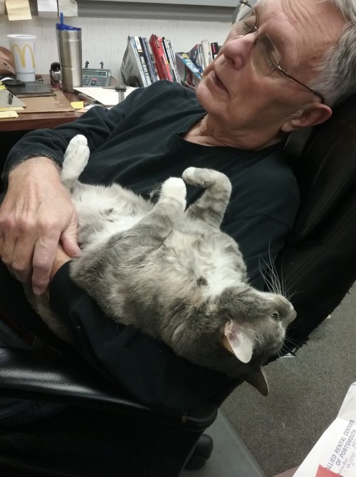 Well, Gypsy continues to adore “her” Motor Man. I just wish she could relax a little. And, no, he wasn’t asleep, just taking a short break from making horsepower.