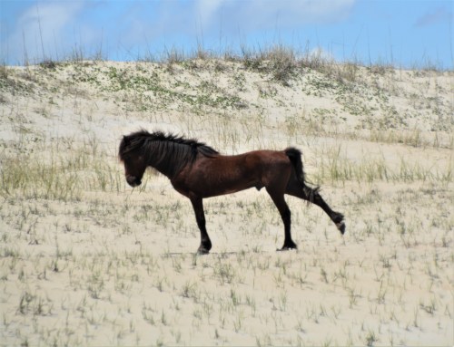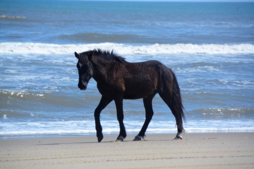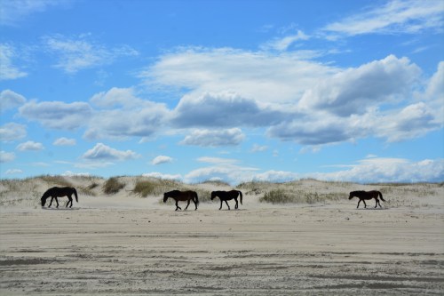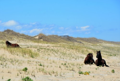 The temps were in the 70’s, the sky was an unbelievable blue, and horses were easy to spot. From the dunes….