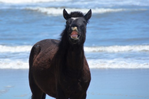 Seeing the horses lying down is one of the most peaceful scenes we find. We often have our in-the-vehicle picnic while facing the ocean. But, on this particular day, we decided this was the best lunch-time view.
