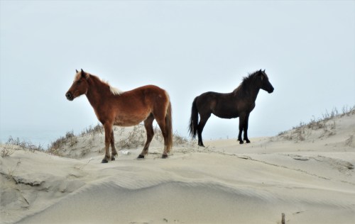 Love the stance of the darker one in this picture; perhaps another horse spotted on the other side of the dune?