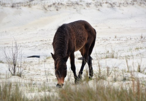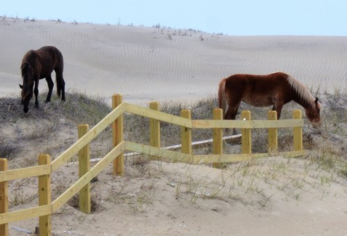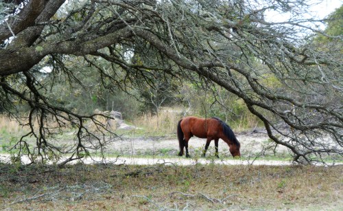 And, now for a bit of silliness. As we ride the “back roads” of Carova, some things catch our eye that, at first glance, make us think we’re seeing a horse: garbage cans, barbecue grills, shrubs. (No, our eyesight really isn’t that bad; this usually happens from a distance.) Last week, Motor Man and I saw this tree, and both of us immediately thought of how much the top branches resembled a horse’s head.