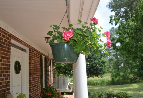 My favorite hanging plants for our front porch are ivy-leaf geraniums.