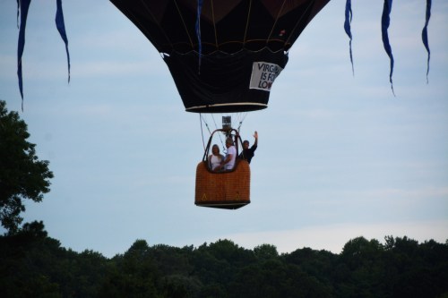 We enjoy meeting Mark’s passengers, most of whom have never been in a hot air balloon.  I take pictures of them in the basket before their flight and sometimes after the landing.  And, of course, I take pictures during the flight.  I usually get their email address and send the best photos to them. And Motor Man usually helps with the launch. (It’s rather involved.)