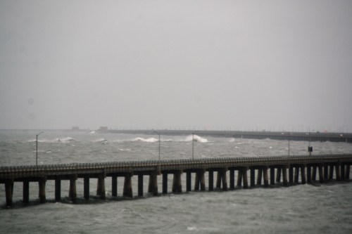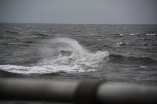There was some interesting wave action visible as we crossed the Chesapeake Bay Bridge Tunnel. When we first saw this, we thought a couple of boaters were braving the rough waters and that we were seeing spray from the boats.