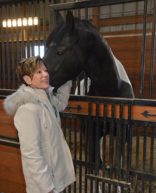 In addition to the Friesians and Baroque Pintos, the farm also has a Gypsy Vanner named Tristan.