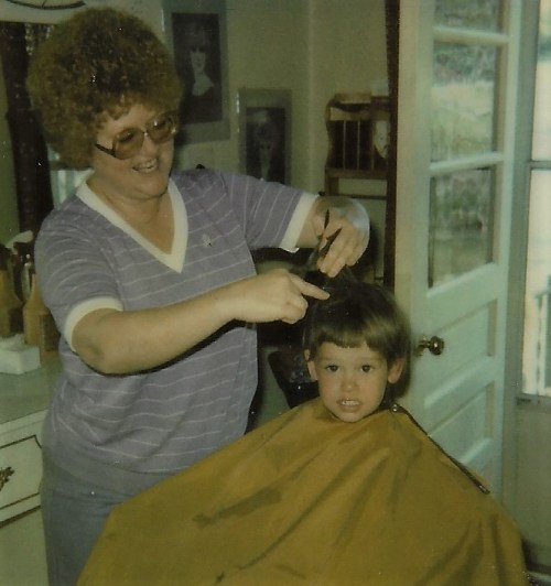 I apparently don’t have a picture of Marshall during his first haircut. He was three when this one was taken, obviously much older than the little boy in the ‘inspiration photo’. No tears, but the stylist looks much happier than Marshall.