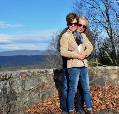 The last place we remembered having it was at that overlook.  When we were there, he had the idea to use his cell phone, placed on its side on that stone wall, to angle the front of the camera when we took our picture.  (That didn’t work, but we knew there was a possibility that’s where we’d left his phone.)