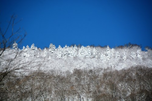 And this time, we were successful. Although we saw no snow as we neared the ski resort, once we got there, there was SNOW. We were amazed at the view of the mountains. The flocked trees seemed to be highlighted.