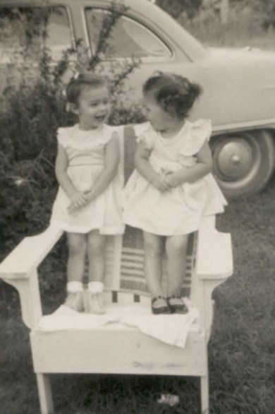 Tagged one word wednesday innocence, two little girls standing in an adirondack chair