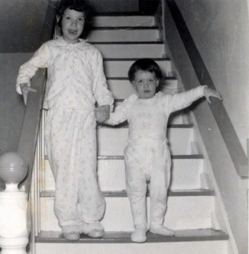 Snaggle-toothed me on the left, and my niece on the right