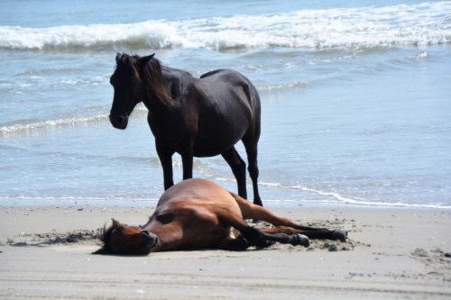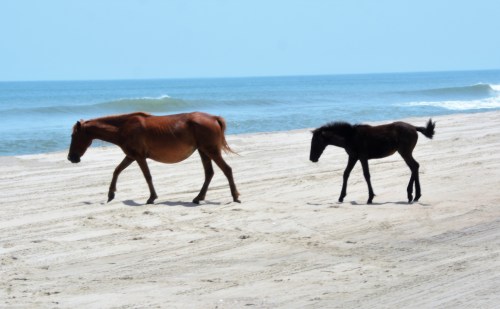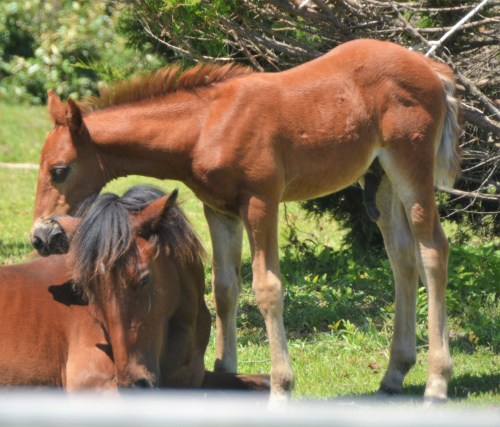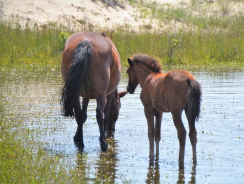 You may recall this picture from my  One Word Wednesday post last week (“Young” for the letter Y). The baby is one of this year’s foals, a little guy named Sebastian. How he came to be given that name is a sad story. Sebastian was born on May 18, one day after a tragic house fire in the Outer Banks area claimed the lives of a young woman and her nine-year-old son,  Sebastian. The Corolla Wild Horse Fund chose to name this baby in memory of Sebastian.