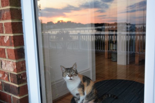 Well, it’s quiet until Sundae realizes I’m out there, and calls me from inside the door.