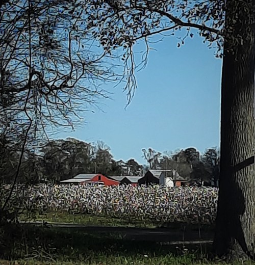 I was on an errand out in the country yesterday and came upon this scene. I was able to safely pull over to take a picture with my cell phone. Although it’s a bit difficult to tell, that’s cotton ready for harvest.