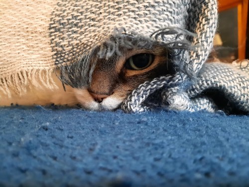 We have a couple of open-weave throws, and Sundae will spend HOURS napping under one of her ‘blankies’. These pictures were taken when I could barely see her face peeping out, but most of the time, she’s completely covered.