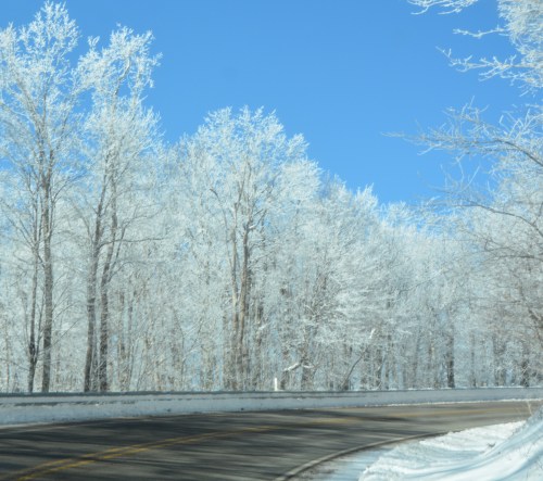We stayed overnight in Elkins, WV, and when we awoke on Thursday, my phone’s weather app showed that the outdoor temp was THREE degrees.