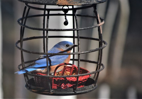 The bluebirds also like this new feeder we bought at Tractor Supply. The openings are a little larger, so we also have a few sparrows visiting this one.