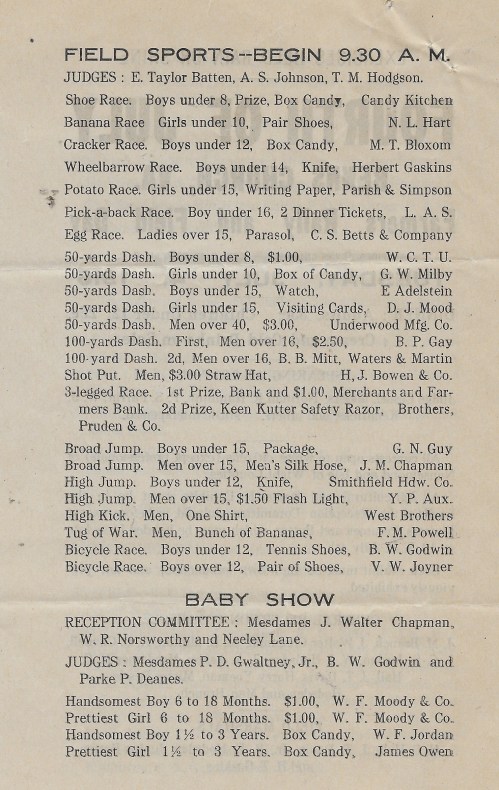 And the final page of the flyer. I don’t know that any of the businesses that were sponsors then are still operating today.  I remember some of them from my childhood days.