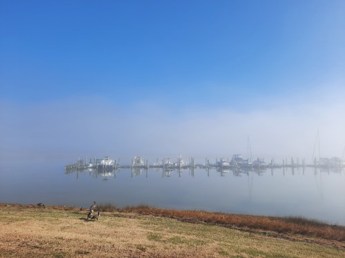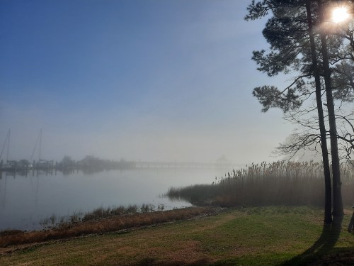 As is usually the case, the fog was worse over the water, so it didn’t create any driving issues.