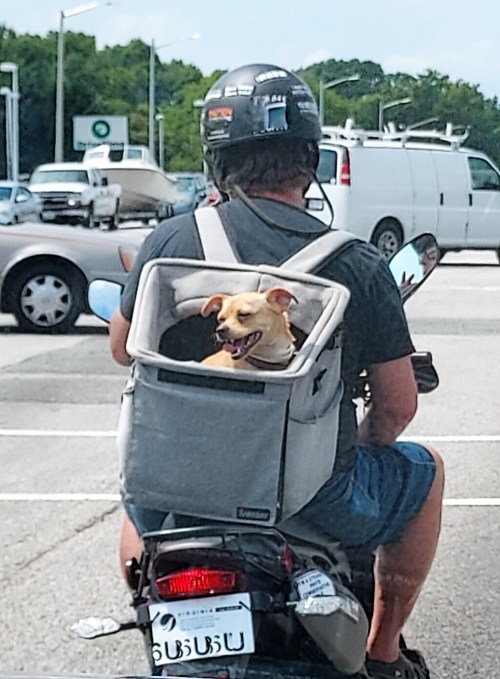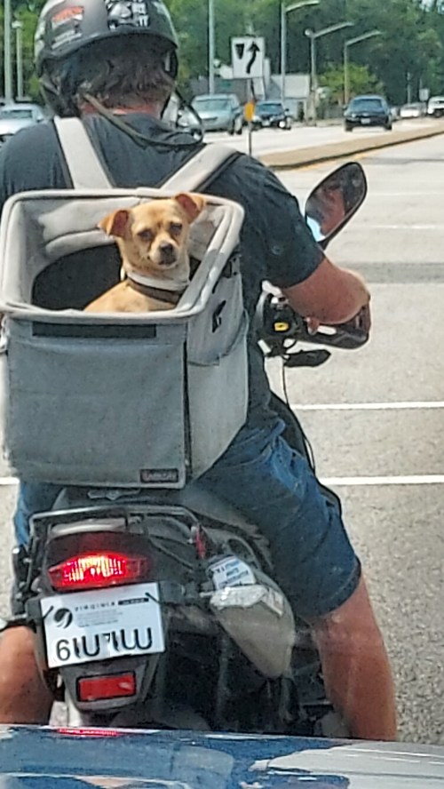 Motor Man happened to be watching as they made a turn and said the little dog ‘leaned’ right into the turn. So this obviously wasn’t his first ride.