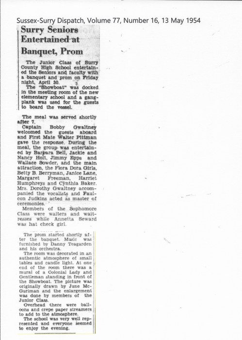 I think I’ve shared here some snippets of articles I’ve found in the past in The Smithfield Times archives, but I’ve recently learned that the Sussex Surry Dispatch is also available for the years from 1933-1963. Since my family was originally from Surry County, I found quite a few articles of interest.