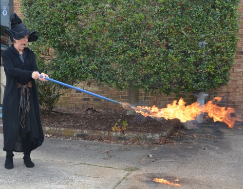 Here is our video. The audio is a little low, so the first thing you hear me say is: “Oh, no! My broom is on fire!”. And then: “That engine from Keen’s!” (Motor Man builds performance engines.) And yes, we had a bucket of water ready in case things got out of hand.