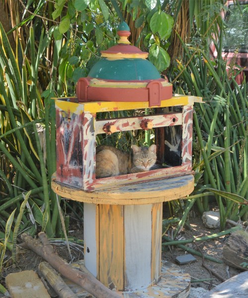 There were also cats everywhere. This one, near Seaglass Beach, had found itself a little spot in which to rest. I had to wonder if it had been made specifically for this kitty.
