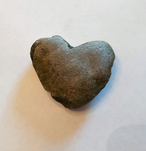 I always love finding anything in the shape of a heart: rocks, shells, etc. A friend once told me that if there were anything heart-shaped on the beach, I would find it. This rock is not quite two inches tall, and the width is about the same.