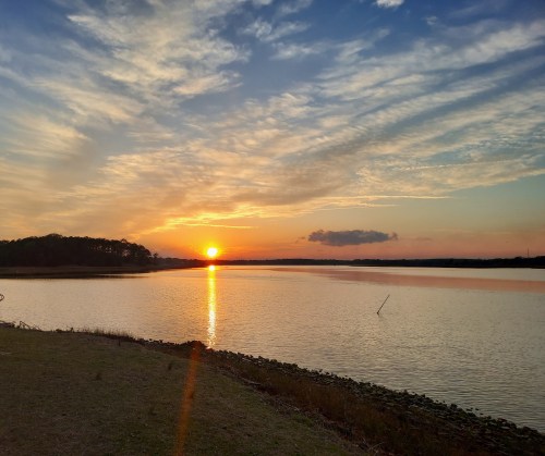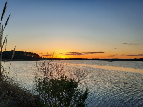 And this was last night’s sunset. Notice the boat to the right? Such a pretty (if cool) time of day for a cruise.