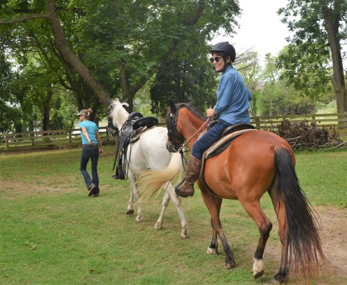 And we were off. There were a couple of gates Elizabeth had to open, so she led Radar for just a bit.