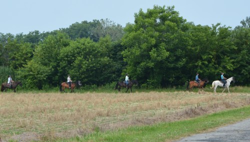 Motor Man staged, so that he could get a picture of us along the edge of one of the newly planted soybean fields. Other than flies and mosquitoes pestering the horses in some areas, we had a perfect ride.
