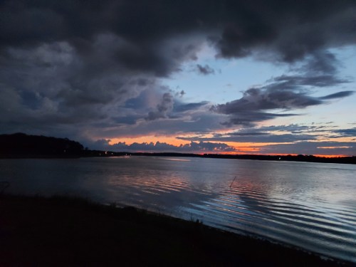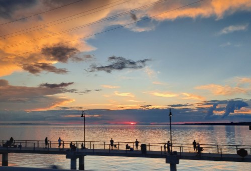 Saturday evening, Motor Man and I were coming home early from our local race track. As we were crossing the bridge connecting Newport News to our county, this was the sky.  (For a short distance, the bridge runs  parallel to a fishing pier.)