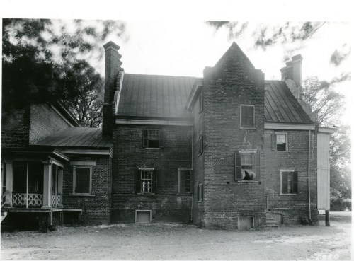 Since we only live about 20 minutes from Bacon’s Castle, we drive up that way often. This was a photo taken of the back of the house a few years ago. After my family moved out of the house, the owner (my grandmother’s cousin, W.P. Warren) renovated the house and made many changes. After his death, in 1972, the house and property was purchased by Preservation Virginia and more renovations were made before it was opened to the public for tours.