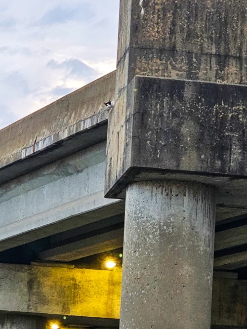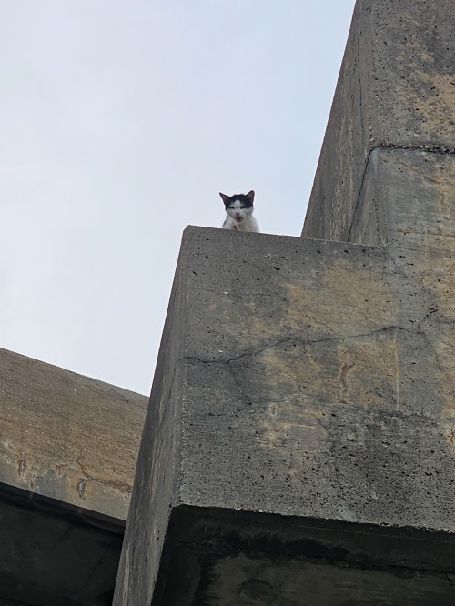 Last Wednesday, a citizen called the NN Animal Welfare agency to report this, a kitty on the ledge of a concrete support on the interstate. This is about 30 minutes or so from us.