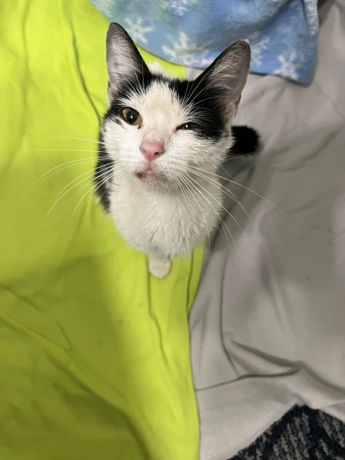 “Ledge Kitty”, as she was nicknamed, had surgery and is reported to be recovering nicely. This picture was taken as she awoke from a nap. The caption was that she wanted to thank everyone for all their help and good wishes.